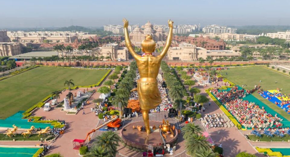 - दिल्ली के अक्षरधाम मंदिर में स्थापित हुई नीलकंठ वर्णी भगवान की 108 फीट ऊंची प्रतिमा