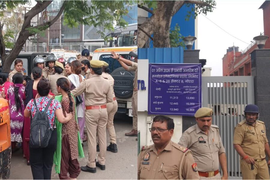 - नोएडा में सैलरी बढ़ाने की मांग को लेकर महिलाओं का बवाल, कंपनी गेट पर हंगामे क बाद पुलिस ने संभाला मोर्चा