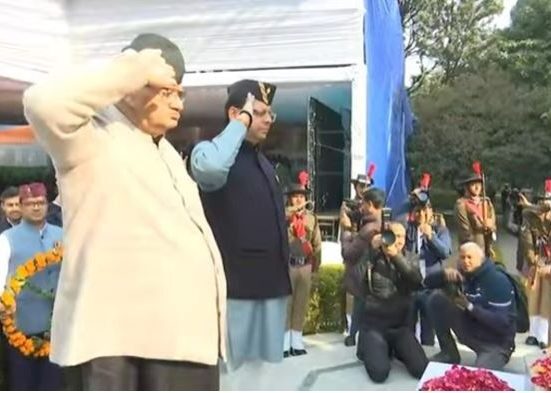 उत्तराखंड: मुख्यमंत्री पुष्कर सिंह धामी ने विजयदिवस के अवसर पर गांधी पार्क स्थित शहीद स्मारक पर शहीद नायकों को श्रद्धांजलि अर्पित की. सीएम ने शहीदों