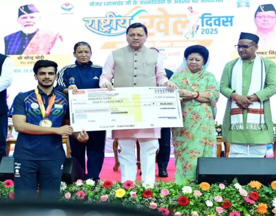 राष्ट्रीय खेल दिवस के मौके पर सीएम धामी ने किया पदक जीतने वाले खिलाड़ियों एवं प्रशिक्षकों को सम्मानित