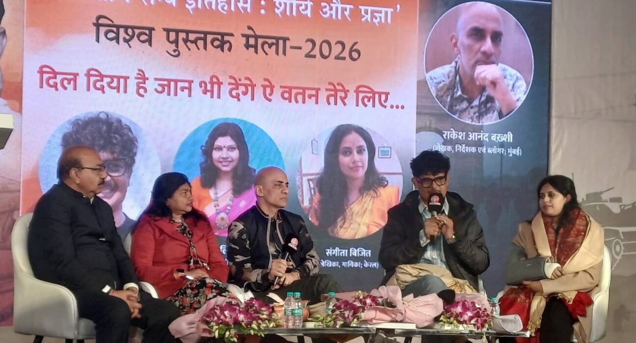 नई दिल्ली: थीम पवेलियन, भारत मंडपम, विश्व पुस्तक मेला–2026 में दिग्गज गीतकार आनंद बख्शी पर भारतीय सेना को समर्पित भावपूर्ण आयोजन मंगलवार दिनांक 13-1-26 को अद्विक पब्लिकेशन द्वारा आयोजित किया गया, “दिल दिया है जान भी देंगे ऐ वतन तेरे लिये…”. विश्व पुस्तक मेले के अंतर्गत भारतीय सैन्य इतिहास से जुड़े “शौर्य और प्रज्ञा” कार्यक्रमों की श्रृंखला में आज थीम मंडप पर एक विशेष साहित्यिक, सांस्कृतिक आयोजन संपन्न हुआ. यह कार्यक्रम भारतीय सेना को समर्पित था और प्रसिद्ध गीतकार आनंद बख्शी की स्मृति में आयोजित किया गया। अद्विक पब्लिकेशन प्रा. लिमिटेड के सौजन्य से आयोजित इस सत्र का समय प्रातः 11:00 से 11:45 बजे तक रहा। कार्यक्रम का शीर्षक था— “द कंट्रीब्यूशन ऑफ आनंद बख्शी : ए पोएट एंड लिरिसिस्ट”.