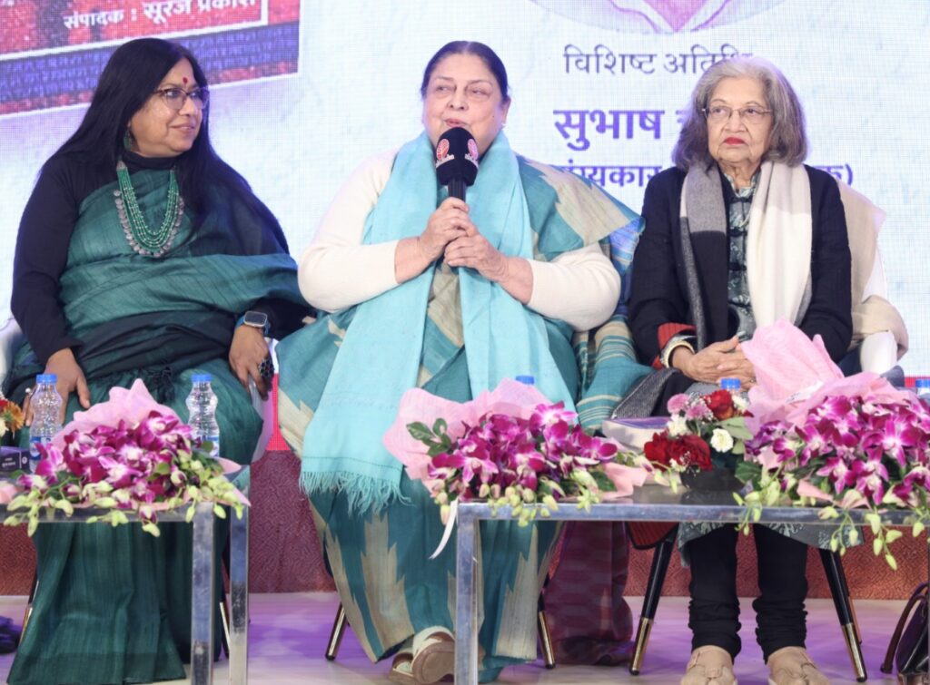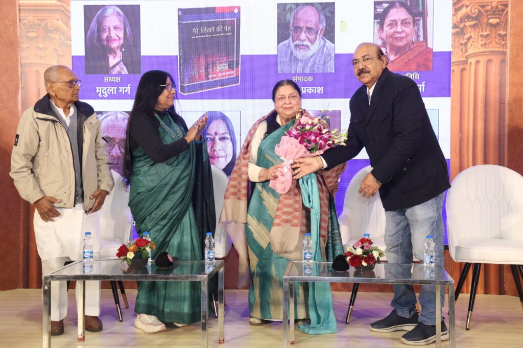 नई दिल्ली: शनिवार 17 जनवरी का दिन पुस्तक मेले में खास दिन था. मौका था सूरज प्रकाश द्वारा संपादित किताब “मेरे लिखने की मेज” का लोकार्पण. लेखक मंच सजा था वरिष्ठ साहित्यकारों से. कार्यक्रम की अध्यक्षता कर रही थीं साहित्य अकादमी पुरस्कार प्राप्त वरिष्ठ लेखिका मृदुला गर्ग. मुख्य अतिथि के रूप में मौजूद थीं साहित्य अकादमी पुरस्कार प्राप्त लेखिका नासिरा जी. विशिष्ट अतिथि थे बिलासपुर से पधारे सतीश जायसवाल और लेखिका जयंती.
