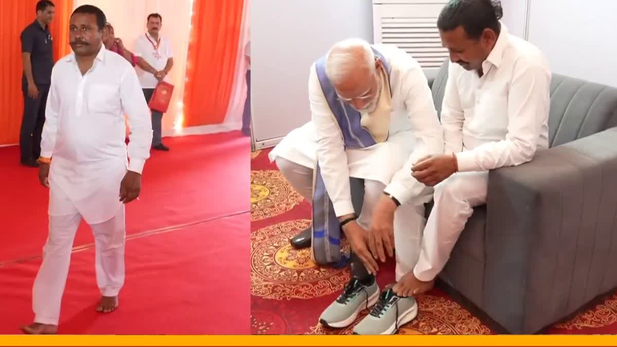 आज प्रधानमंत्री जी ने उन्हें जूते पहनाए।… pic.twitter.com/B6zidFDmOk