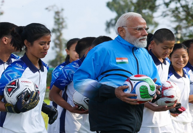 दिल्‍ली-एनसीआर सिक्किम में पीएम मोदी ने खेला फुटबॉल, सोशल मीडिया पर शेयर की तस्वीरें