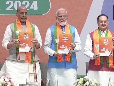 #WATCH | Bharatiya Janata Party (BJP) releases its election manifesto – 'Sankalp Patra' for the ensuing Lok Sabha polls in the presence of Prime Minister Narendra Modi, Home Minister Amit Shah, Defence Minister Rajnath Singh and party President JP Nadda.#LokSabhaElection pic.twitter.com/WVB8Km1NWJ
