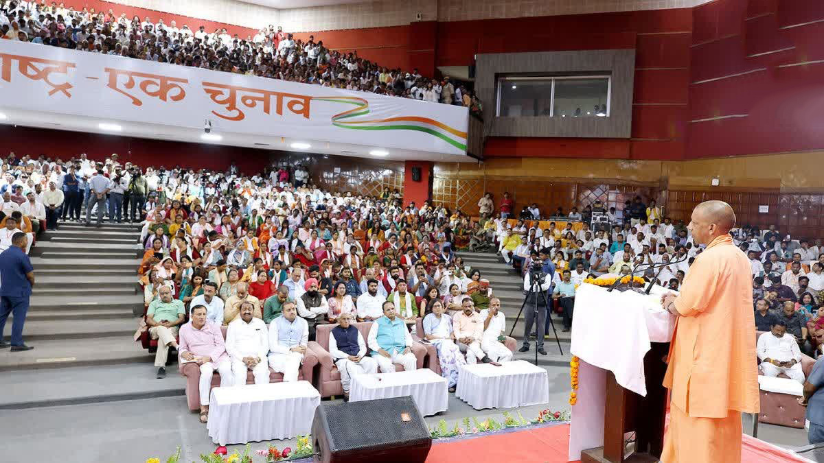 सीएम योगी सोमवार को लखनऊ के इंदिरा गांधी प्रतिष्ठान में आयोजित एक राष्ट्र-एक चुनाव अभियान के अंतर्गत विभिन्न सामाजिक संगठनों एवं स्वयंसेवी संस्थाओं के प्रतिनिधियों की तरफ से आयोजित राज्यस्तरीय सम्मेलन को संबोधित करते हुए कहा कि प्रधानमंत्री नरेंद्र मोदी के ‘वन नेशन वन इलेक्शन’ विजन को साकार करने की आवश्यकता है, जो 2019 में लौह पुरुष सरदार वल्लभ भाई पटेल की प्रतिमा अनावरण के दौरान घोषित हुआ था.