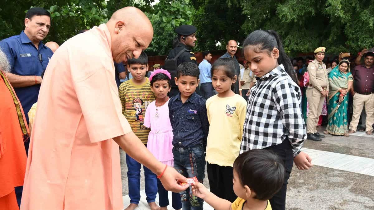 मुख्यमंत्री ने सोमवार सुबह गोरखनाथ मंदिर परिसर में भ्रमण के दौरान परिजनों के साथ आए बच्चों को अपने पास बुलाकर उन्हें प्यार-दुलार दिया। बच्चों से बेहद आत्मीय तरीके से संवाद करने के साथ सीएम ने उनसे ठिठोली भी की। सबके माथे पर हाथ फेरकर आशीर्वाद दिया और हमेशा की तरह उन्होंने बच्चों को चॉकलेट गिफ्ट किया।