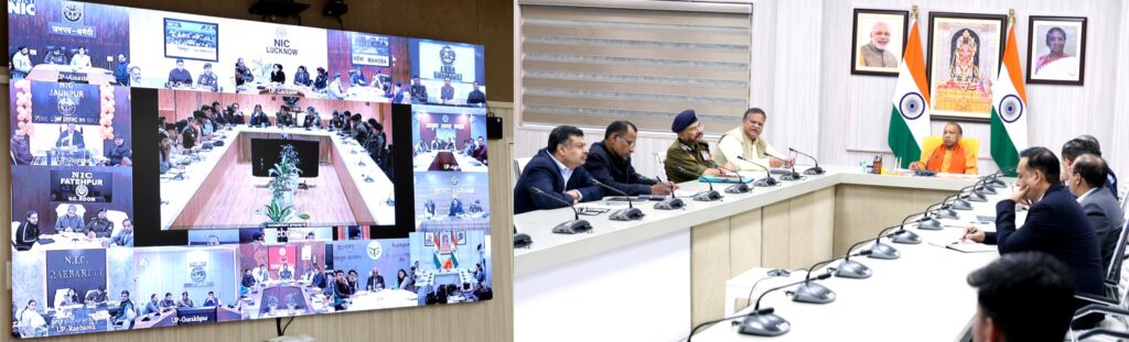 मुख्यमंत्री योगी आदित्यनाथ ने शासन स्तर के वरिष्ठ अधिकारियों की उपस्थिति में प्रयागराज, कौशाम्बी, कानपुर, सुल्तानपुर, अमेठी, वाराणसी, अयोध्या, मिर्जापुर, जौनपुर, चित्रकूट, बांदा, प्रतापगढ़, भदोही, रायबरेली, गोरखपुर, महोबा और लखनऊ आदि जनपदों/जोन/रेंज में तैनात वरिष्ठ पुलिस अधिकारियों और मंडलायुक्तों, जिला प्रशासन के अधिकारियों के साथ वीडियो कॉन्फ्रेंसिंग के जरिए विशेष बैठक की.