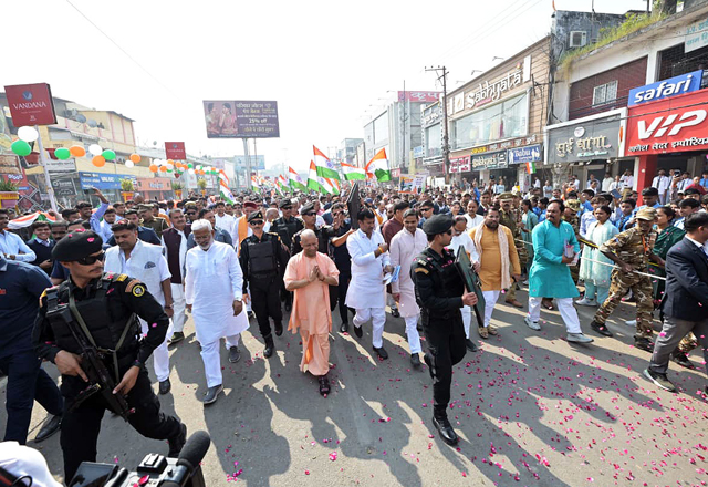 योगी ने इस संबोधन के बाद नगर निगम से बाहर आकर टाउन हॉल चौक पर गांधी प्रतिमा पर पहले माल्यार्पण किए. इसके बाद करीब 2 किलोमीटर की पदयात्रा कर सरदार पटेल की प्रतिमा पर काली मंदिर चौक पर उन्होंने माल्यार्पण किया. यह पद यात्रा गीता वाटिका में विशंभर पाठक पार्क के पास जाकर समाप्त हुई. इसमें भाजपा के प्रदेश उपाध्यक्ष धर्मेंद्र सिंह समेत तमाम वरिष्ठ नेता व कार्यकर्ता शामिल हुए. इससे पहले सीएम योगी ने सरदार पटेल को लेकर भी लोगों के बीच अपनी बातें रखीं.