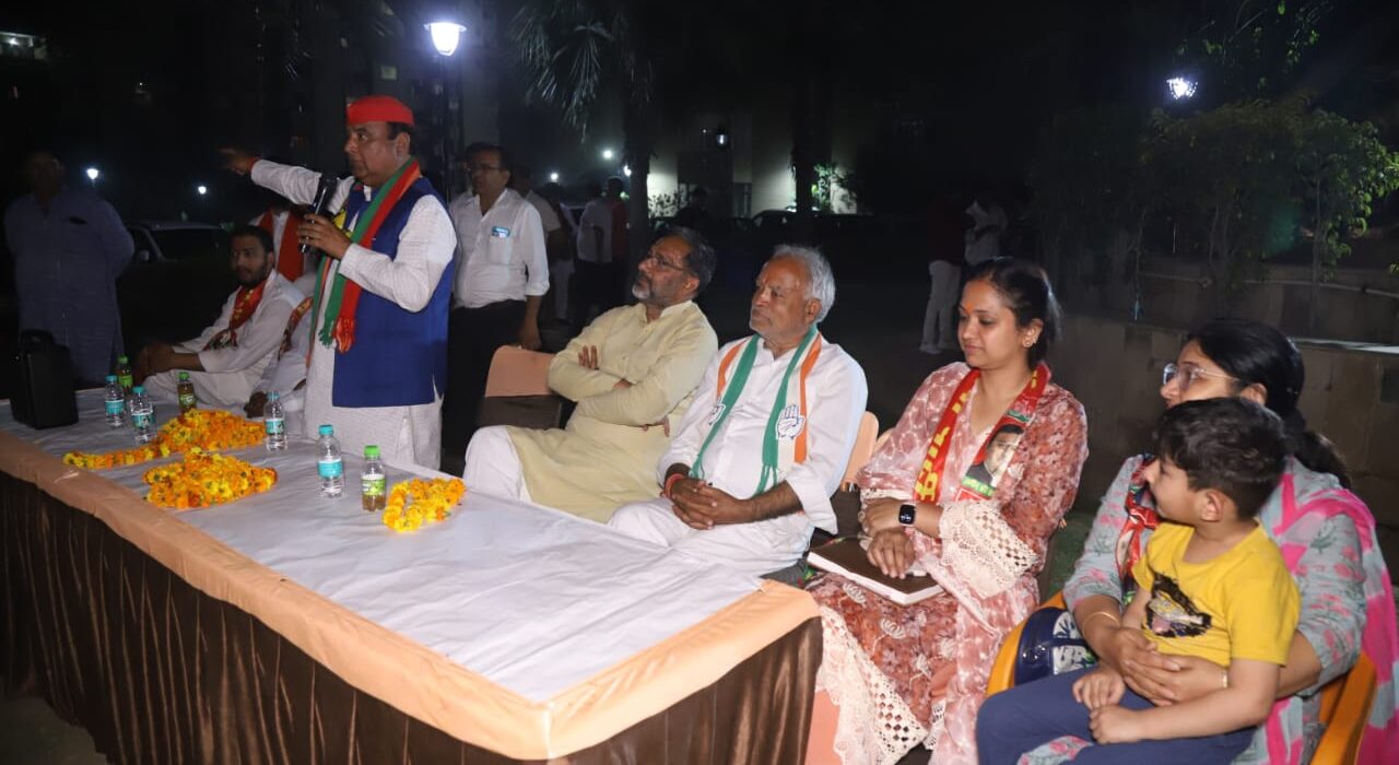 इंडिया गठबंधन के लोकसभा प्रत्याशी डॉ. महेंद्र सिंह नागर ने अपने चुनावी प्रचार अभियान को तेज करते हुए आज ग्रेटर नोएडा वेस्ट की इरोज सम्पूर्णम सोसायटी में लोगों से जनसंपर्क किया. सोसायटी पहुंचने पर सोसायटी के वरिष्ठ नागरिक श्री रोहतास बाबू जी, डाॅ के.आर.तोमर जी, आर.बी. शुक्ला जी, जगमोहन यादव जी, सरजीत तंवर जी, भागीरथ जर्नलिस्ट, पंकज चौधरी व सोसायटी अध्यक्ष दीपांकर कुमार ने इंडिया गठबंधन प्रत्याशी डॉ महेंद्र सिंह नागर व सपा के राष्ट्रीय प्रवक्ता राजकुमार भाटी का माला पहनाकर स्वागत किया. आयोजित जनसंमपर्क सभा में मुख्य रूप से कपिल देव, सुरेन्द्र जी, मदनलाल जी, अमर नाथ यादव जी, विशाल चौधरी, श्रीमती माया यादव, विजय लक्ष्मी, उषा, विद्या, रीदीमा, रेनू कालरा, ममता कालरा आदि सोसायटी के लोग उपस्थित रहे.