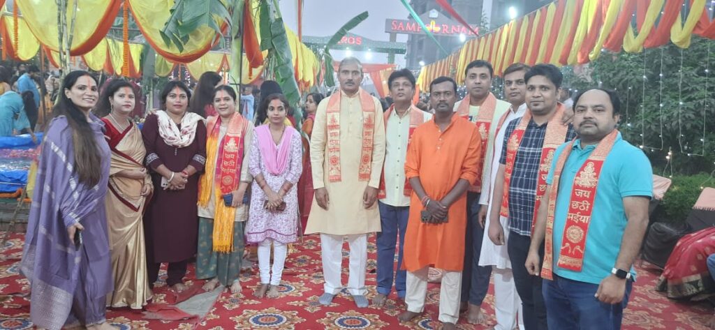 सोसायटी के सैकड़ों महिलाओं और पुरुषों ने शाम को अस्ताचलगामी सूर्य देव को अर्घ्य देकर छठ मैया का पूजन किया. इस दौरान सोसायटी की महिलाओं ने पारंपरिक गीत भी गुनगुनाए.
