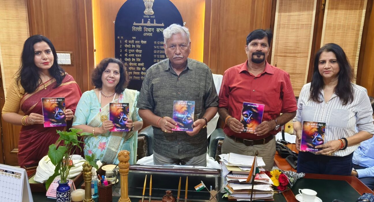 गाजियाबाद: गत दिवस विधानसभा दिल्ली में गाजियाबाद निवासी सेठ मुकन्द लाल इन्टर कालेज की सेवानिवृत्त शिक्षिका डॉक्टर निवेदिता शर्मा के भजन संग्रह तुम आओ तो मोहन का लोकार्पण विधानसभा अध्यक्ष श्री रामनिवास गोयल द्वारा किया गया. इस अवसर पर सुश्री अनीता मुकीम गोयल ,डॉक्टर अवधेश तिवारी ,डॉक्टर गीतिका चतुर्वेदी उपस्थित रहे. रूस,यूक्रेन, पोलैंड मलेशिया, नेपाल आदि विदेशी डेलीगेट्स के सामने अध्यक्ष महोदय के अनुरोध पर डॉक्टर निवेदिता शर्मा ,डॉक्टर अवधेश तिवारी और डॉक्टर गीतका चतुर्वेदी ने काव्य पाठ भी किया.