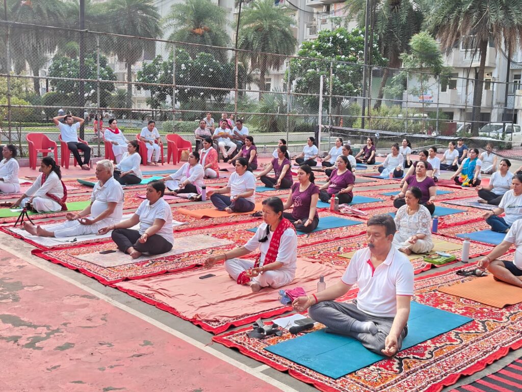 इस कार्यक्रम में सर्व प्रथम प्रार्थना के पश्चात प्रोटोकॉल को ध्यान में रखते हुए कुछ सूक्ष्म क्रियाएं , बैठने,लेटने और खड़े होने वाले कुछ योगासन और कपालभाति के साथ अन्य प्राणायाम कराए गए. उसके पश्चात मीना, कृष्णा और उनके ग्रुप ने मधुर वाणी में एक सुंदर योग गीत प्रस्तुत किया. डॉक्टर पुष्कर ने एक्यूप्रेशर और कलर थेरेपी के बारे में कुछ आवश्यक बातें बताई. जैसे रंगों का हम थेरेपी में कैसे उपयोग कर सकते हैं और शरीर के कुछ मुख्य प्वाइंटों के बारे में बताया. जो सभी के लिए बहुत ही आवश्यक जानकारी थी. इसके पश्चात योग गुरू रेनू तेवतिया और अर्चना शर्मा द्वारा चलाई जाने वाली एक योग क्लास के ग्रुप ने प्रख्यात गायक कैलाश खेर की आवाज में प्रस्तुत प्रख्यात वंदना ” एक नदी से बह रहे हैं आदियोगी…” के बोल पर एक सुंदर योग- नृत्य प्रस्तुत किया गया.