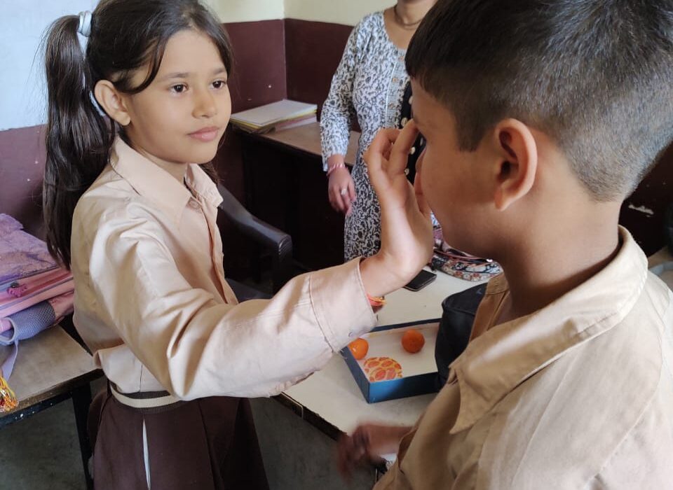 गाजियाबाद: आज संत रविदास कालौनी,पुराना विजय नगर स्थित “इन्दु शिशु विद्या सदन” संचालित “ममता की छांव सेवा ट्रस्ट” की सभी बालिकाओं ने स्कूल के सभी भाइयों को राखी बांधकर रखा- बंधन का पर्व मनाया.