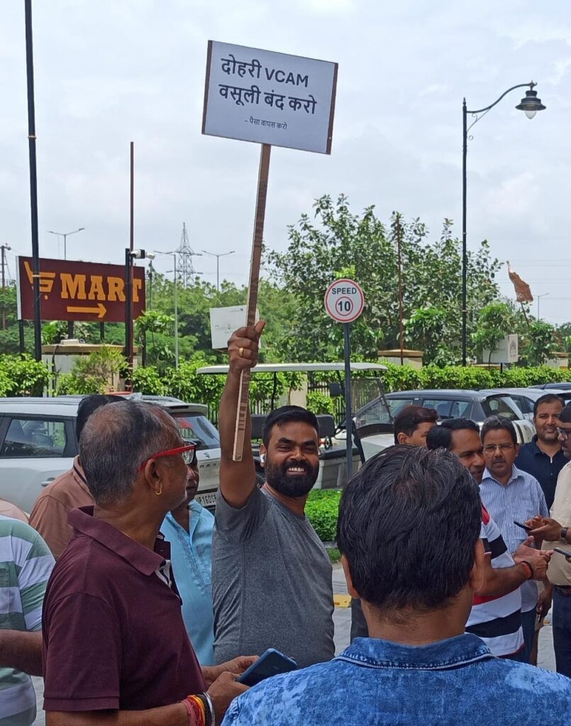 सोसायटी के निवासियों का बिल्डर के खिलाफ यह प्रदर्शन VCAM चार्ज को हटाने, डीजल जेनरेटर से मिलने वाली बिजली संकट, व पानी संकट की गंभीर स्थिति और खराब मेंटेनेंस सेवाएं को लेकर किया जा रहा है. सोसायटी लोगों के इस प्रदर्शन में आज सोसायटी के वरिष्ठ नागरिक, महिलाएं व युवाओं ने बढ़ चढ़ कर हिस्सा लिया.