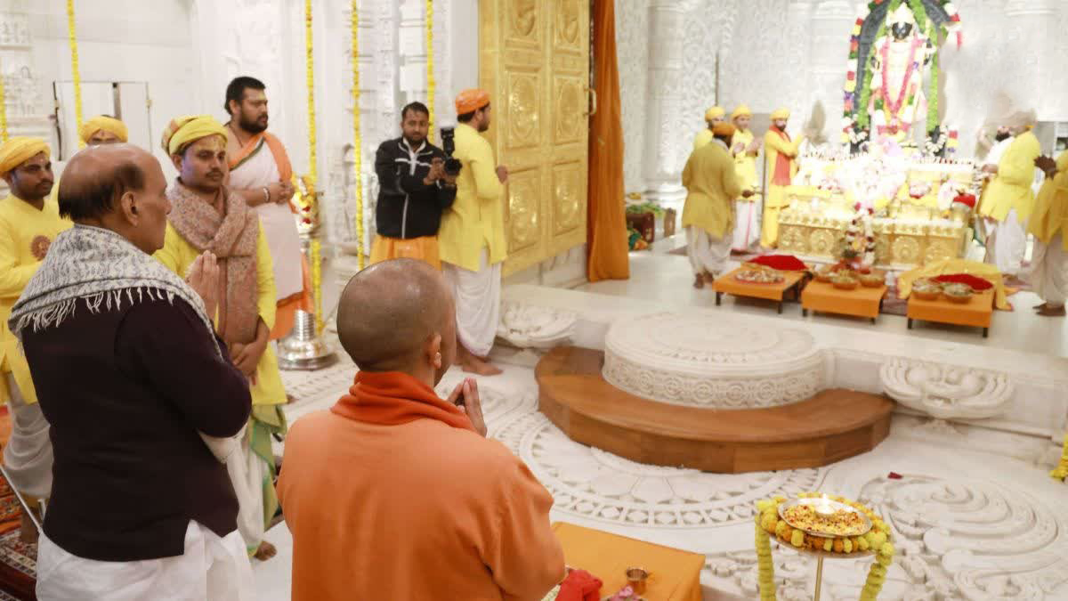 रामलला प्राण प्रतिष्ठा की दूसरी वर्षगांठ; रक्षामंत्री और सीएम योगी ने की महाआरती