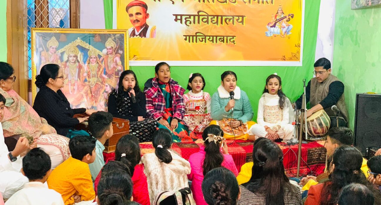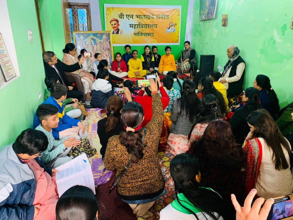 गाजियाबाद : वी. एन. भातखंडे संगीत महाविद्यालय ,अशोक नगर, गाज़ियाबाद में प्राण प्रतिष्ठा समारोह के शुभ अवसर पर दो दिवसीय श्री रामोत्सव का आयोजन किया गया. जिसमें लगभग 70 प्रतिभागियों ने अपनी प्रस्तुति दी. सुशीला इंटर कॉलेज की पूर्व प्राचार्य डॉ. तरुणा त्यागी मुख्य अतिथि के रूप में उपस्थित रहीं. महाविद्यालय के संस्थापक और अध्यक्ष गुरूजी पं. हरिदत्त शर्मा ने श्रीराम दरबार के समक्ष दीप प्रज्ज्वलित करके कार्यक्रम का शुभारंभ किया।प्रथम दिवस में नन्हे बच्चों ने श्री राम भजन गाकर दर्शकों को भाव विभोर कर दिया. इस दिन बच्चों के साथ ही उनकी माताओं ने भी श्रीराम के भजन व कविताएं सुनाई.