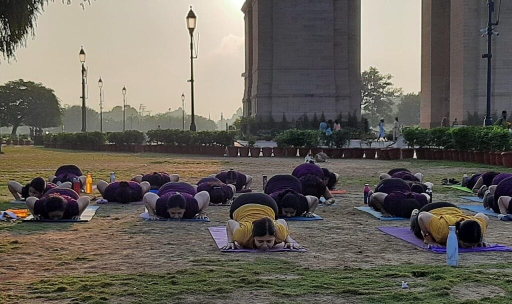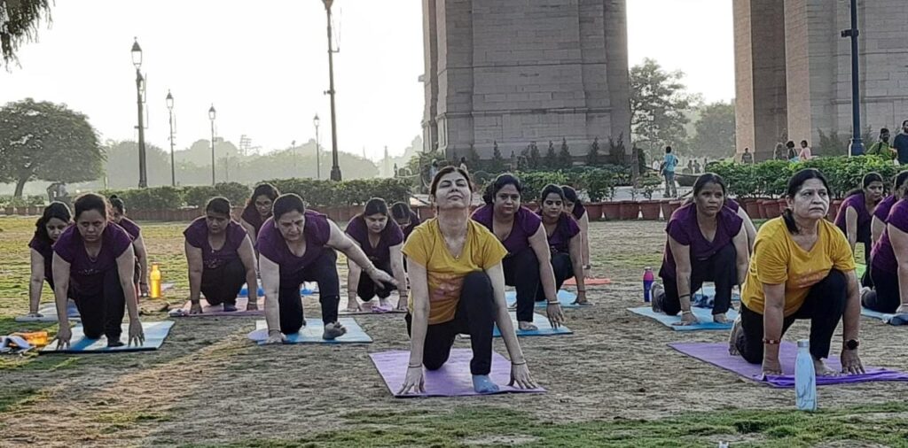 गाजियाबाद: आज दिनांक 29 नवंबर रविवार प्रातः काल 6:30 बजे से 7:30 बजे तक लगभग 34 योग साधिकायें जिनकी उम्र लगभग 12 से 70 वर्ष थी, इंडिया गेट,नई दिल्ली पहुंची. यह सभी साधिकायें योग गुरु रेनू तेवतिया और अर्चना शर्मा के नेतृत्व में राजनगर एक्सटेंशन की के.डब्ल्यू. सृष्टि सोसाइटी से एक बस से वहां पहुंची थी. जिनमें-आरती सिन्हा, अलका गुप्ता, अपर्णा, अरुणा नैय्यर, दीपिका मलिक, गुड्डी, मीनू त्यागी, मनीषा गुप्ता, महिमा त्यागी, प्रीति यादव, कमलेश चौधरी, रीना, रेनू गर्ग, रेखा,रुचि त्यागी, रीता त्यागी, सरोज यादव, शांताअजय, संयोगिता त्यागी, स्मिता, शिवा मिश्रा,सुमन सिंह, टिशा त्यागी, रिद्धि गुप्ता ,रेशु,श्वेता ,दीपा वर्मा नीतान्या अरोडा, प्राची,शैली, अपूर्वा त्यागी व आशी गुप्ता शामिल थी. इन्होने राजधानी के राजपथ पर इंडिया गेट के मैदान में 51 मिनट में सूर्य नमस्कार के 51 चक्र का प्रदर्शन किया और सूर्य नमस्कार के लाभों की जानकारी से अवगत कराया.