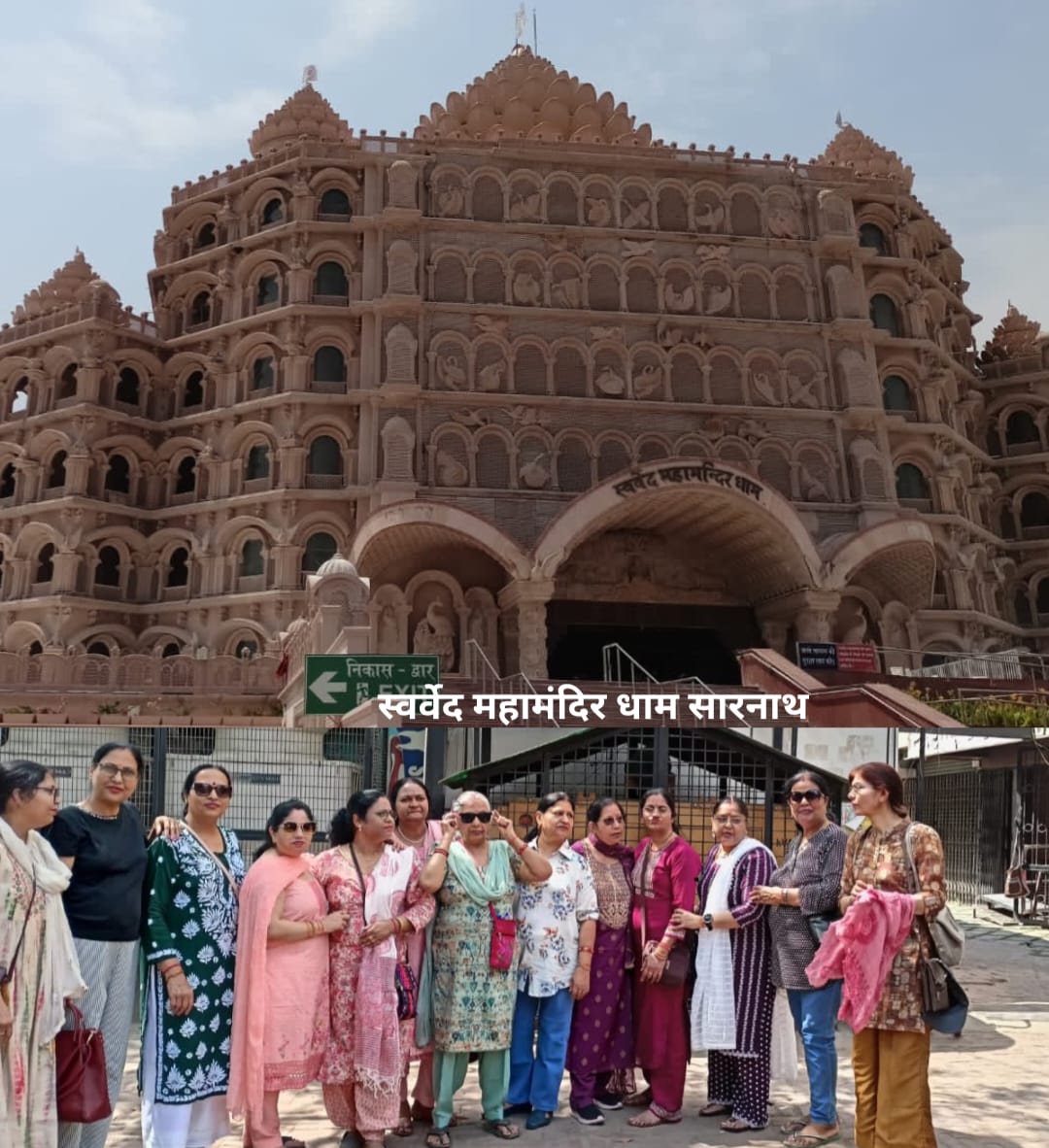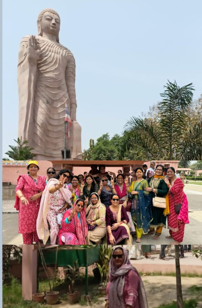उसके पश्चात यह दल सारनाथ गया. सारनाथ गंगा और वरुणा नदियों के संगम के पास,वाराणसी से 10 किलोमीटर उत्तर पूर्व में स्थित एक स्थान है। बौद्ध परंपरा के अनुसार, सारनाथ वह स्थान है जहां लगभग 528 ईसा पूर्व, 35 वर्ष की आयु में गौतम बुद्ध ने बोधगया में ज्ञान प्राप्त करने के बाद अपना पहला उपदेश दिया था. भारत का राष्ट्रीय प्रतीक अशोक स्तंभ सारनाथ से लिया गया है. इस जगह पर आकर धम्मेक स्तूप के साथ इस 50 मीटर लम्बे स्तंभ को आज भी देखा जा सकता है. बौद्ध धर्म में अशोक स्तंभ का बेहद महत्व है. अशोक स्तंभ के अलावा यहां तिब्बती मंदिर और थाई मंदिर जैसी तमाम घूमने वाली जगहें हैं. सारनाथ में बौद्ध मंदिर में साधिकाओं ने मैडिटेशन किया. वहां की शांत और सकारात्मक ऊर्जा शरीर और मन को एक अद्भुत शांंति और सकारात्मक ऊर्जा प्रदान कर रही थी. इसके पश्चात स्वर्वेद महामंदिर में जहां पर 20000 व्यक्तियों के मेडिटेशन करने का स्थान बन रहा है वहीं पर सब ने सामूहिक रूप से लगभग 15 मिनट का मैडिटेशन किया. यह दल गत दिवस 8 अप्रैल को गाजियाबाद वापिस आ गया है.