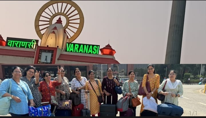 गाजियाबाद : योग शिक्षिका और प्राकृतिक चिकित्सक रेनू तेवतिया के नेतृत्व में गाजियाबाद से 17 योग साधिकाओं ने गत 4 अप्रैल को वाराणसी दर्शन के लिए प्रस्थान किया. 5 अप्रैल को वाराणसी पहुंचे इस ग्रुप में नेहरू नगर से योग शिक्षिका, रेकी मास्टर हीलर व प्राकृतिक चिकित्सक अर्चना शर्मा , कवि नगर से आरती सिन्हा, राजनगर एक्सटेंशन से शिक्षिका महिमा त्यागी, संयोगिता त्यागी,शांता अजय, ज्योति दीक्षित,अलका गुप्ता,मीनाक्षी त्यागी,अरुणा नय्यर, रीता त्यागी ,नंद ग्राम से बबीता, देहरादून से रेनू सिंह, मेरठ से कमलेश चौधरी , दिल्ली से उपासना त्यागी , नोएडा से सुनीता त्यागी व अवंतिका से शारदा त्यागी शामिल थे. रेनू तेवतिया ने बताया कि हमने विशेष रूप से वाराणसी में बनारसी साड़ियों को हाथ द्वारा कैसे बनाया जाता है यह भी अवलोकन किया. सिल्क की बनारसी साड़ियां किस तरह से अलग-अलग धागे लगाकर बनायी जाती हैं यह हमें वहां के कारीगरों ने बुनकर दिखाया.