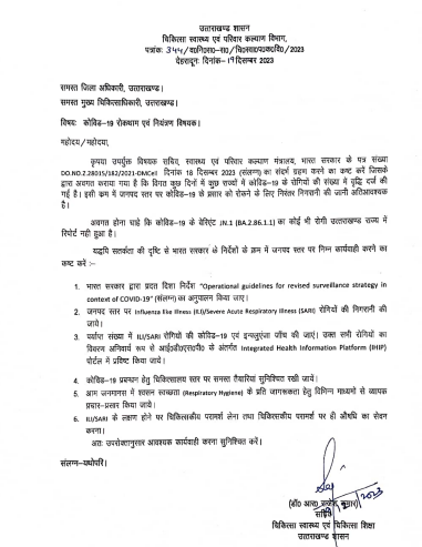 स्वास्थ्य सचिव डा. आर. राजेश कुमार ने सभी जिलाधिकारियों और मुख्य चिकित्सा अधिकारियों को निर्देश जारी किये हैं कि अस्पतालों में कोविड से बचाव के लिए जारी गाइडलाइन का पालन करें. साथ ही सांस, फेफड़े और हृदय रोगियों की निगरानी की जाएं और उनके इंन्फुंएजा की जांच की जाए.