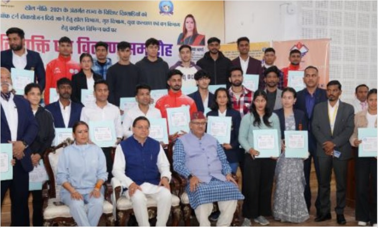 उत्तराखंड: मुख्यमंत्री पुष्कर सिंह धामी ने सोमवार को मुख्य सेवक सदन में खेल नीति-2021 के अंतर्गत विभिन्न पदों पर चयनित राज्य के 31 विशिष्ट खिलाड़ियों को खेल विभाग, गृह विभाग, युवा कल्याण एवं वन विभाग में आउट ऑफ टर्न सेवायोजन, परिवहन विभाग में 25 कनिष्ठ सहायकों तथा उद्यान विभाग में 28 सहायक लेखाकारों को नियुक्ति पत्र प्रदान किये. इस प्रकार कुल 84 अभ्यर्थियों को मुख्यमंत्री ने नियक्ति पत्र वितरित किये.