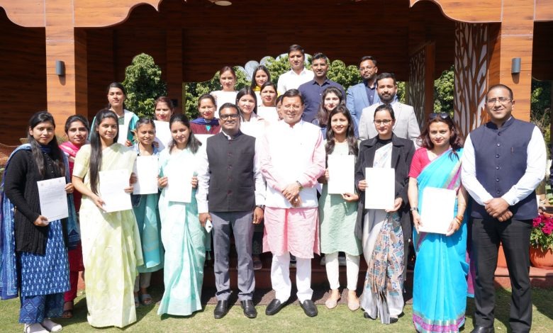 उत्तराखंड: मुख्यमंत्री पुष्कर सिंह धामी ने शुक्रवार को मुख्यमंत्री आवास परिसर में महिला सशक्तिकरण एवं बाल विकास विभाग के अंतर्गत चयनित 16 सुपरवाइजरों तथा आबकारी विभाग के अंतर्गत चयनित 10 निरीक्षक व 01 कनिष्ठ सहायक को नियुक्ति पत्र प्रदान किये. इस प्रकार कुल 27 अभ्यर्थियों को मुख्यमंत्री ने नियुक्ति पत्र वितरित किये.