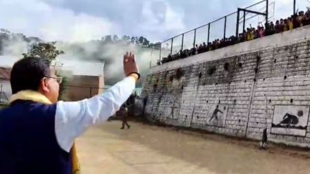 रानीखेत पहुंचे सीएम धामी बच्चों ने किया अभिवादन, CM ने दी भविष्य के लिए शुभकामनाएं