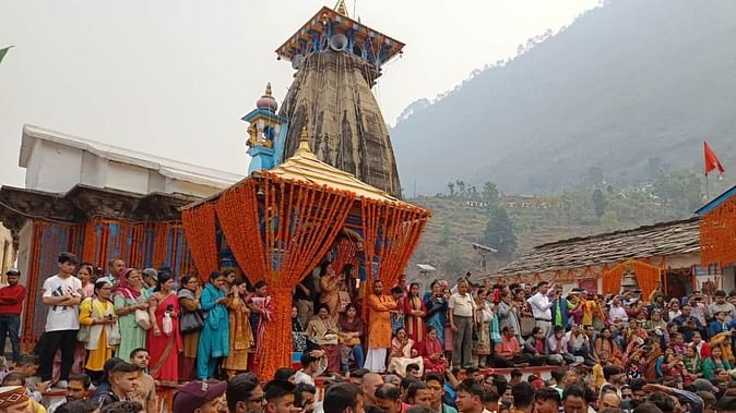 जय केदारनाथ| गर्भ गृह से बाहर लाई गई बाबा केदार की डोली, जयकारों के साथ धाम के लिए किया प्रस्थान!#Kedarnath #Ukhimath#Uttarakhand pic.twitter.com/xD6MaCcw8M