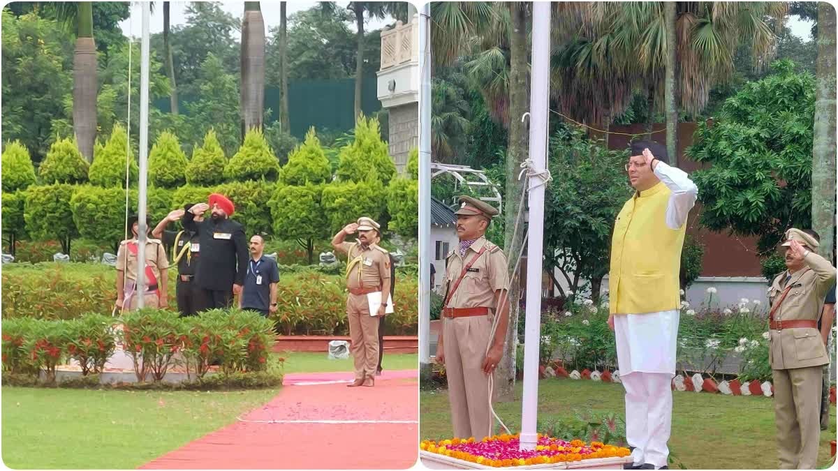 उत्तराखंड: देश के 78वें स्वतंत्रता दिवस के अवसर पर देशभर में ध्वजारोहण किया जा रहा है. इसी क्रम में राज्यपाल ले. ज. गुरमीत सिंह (सेनि.) ने राजभवन में और सीएम पुष्कर सिंह धामी ने मुख्यमंत्री आवास में ध्वजारोहण किया. साथ ही देश के लिए सर्वोच्च बलिदान देने वाले सैनिकों को भी श्रद्धांजलि अर्पित की. इस मौके पर दोनों ने प्रदेश और देशवासियों को स्वतंत्रता दिवस की शुभकामनाएं दी. साथ ही कर्मचारियों को अपने कर्तव्यों का पूरी निष्ठा के साथ पालन करने को लेकर शपथ भी दिलाई.