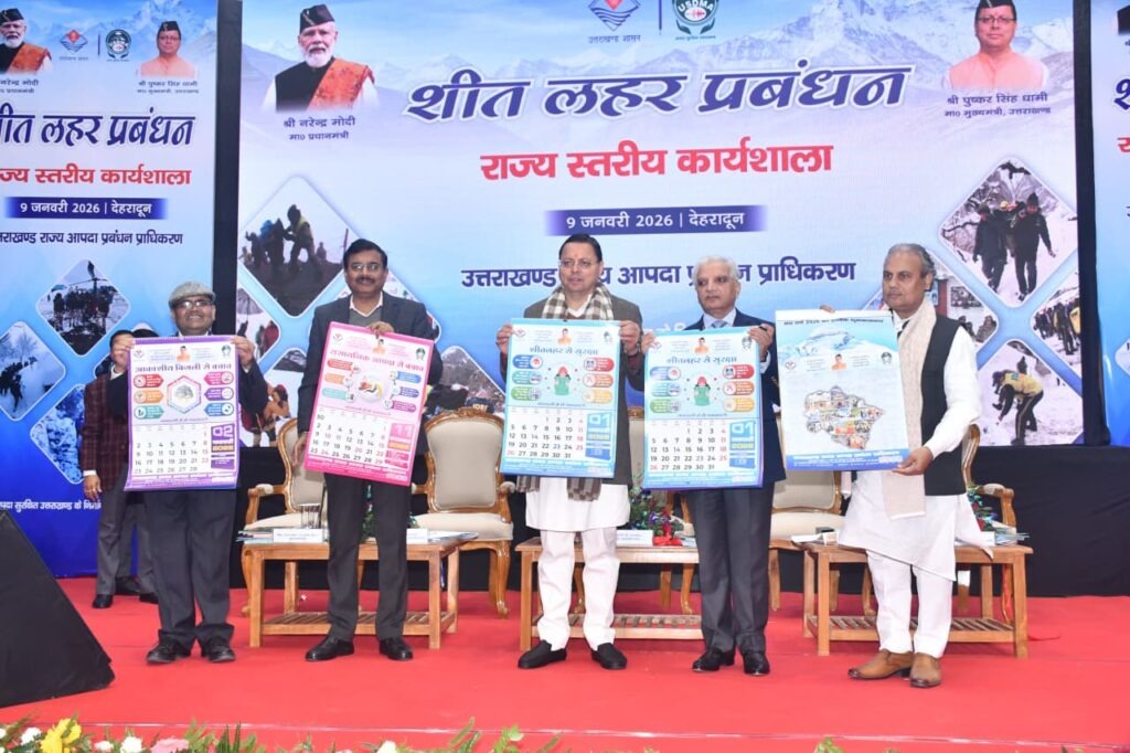 उत्तराखंड: मुख्यमंत्री पुष्कर सिंह धामी ने शुक्रवार को सर्वे ऑफ इंडिया ऑडिटोरियम, हाथीबड़कला में ‘शीतलहर पूर्व तैयारी’ विषय पर आयोजित एक दिवसीय कार्यशाला का शुभारंभ किया. इस अवसर पर उन्होंने शीतलहर, बाढ़, मॉक अभ्यास, हवाई यातायात सहायता की एस.ओ.पी., आपदा प्रबंधन विभाग के नववर्ष कैलेंडर 2026 एवं आपदा प्रबंधन हस्तपुस्तिका का विमोचन किया. कार्यक्रम के दौरान मुख्यमंत्री ने युवा आपदा मित्रों एवं वर्ष 2025 में आपदा के दौरान राहत एवं बचाव में सराहनीय कार्य करने वाले लोगों को सम्मानित भी किया. आपदा प्रबंधन के लिए स्टेट बैंक ऑफ इंडिया द्वारा उपलब्ध कराए गए चार वाहनों का भी मुख्यमंत्री ने फ्लैग ऑफ किया.